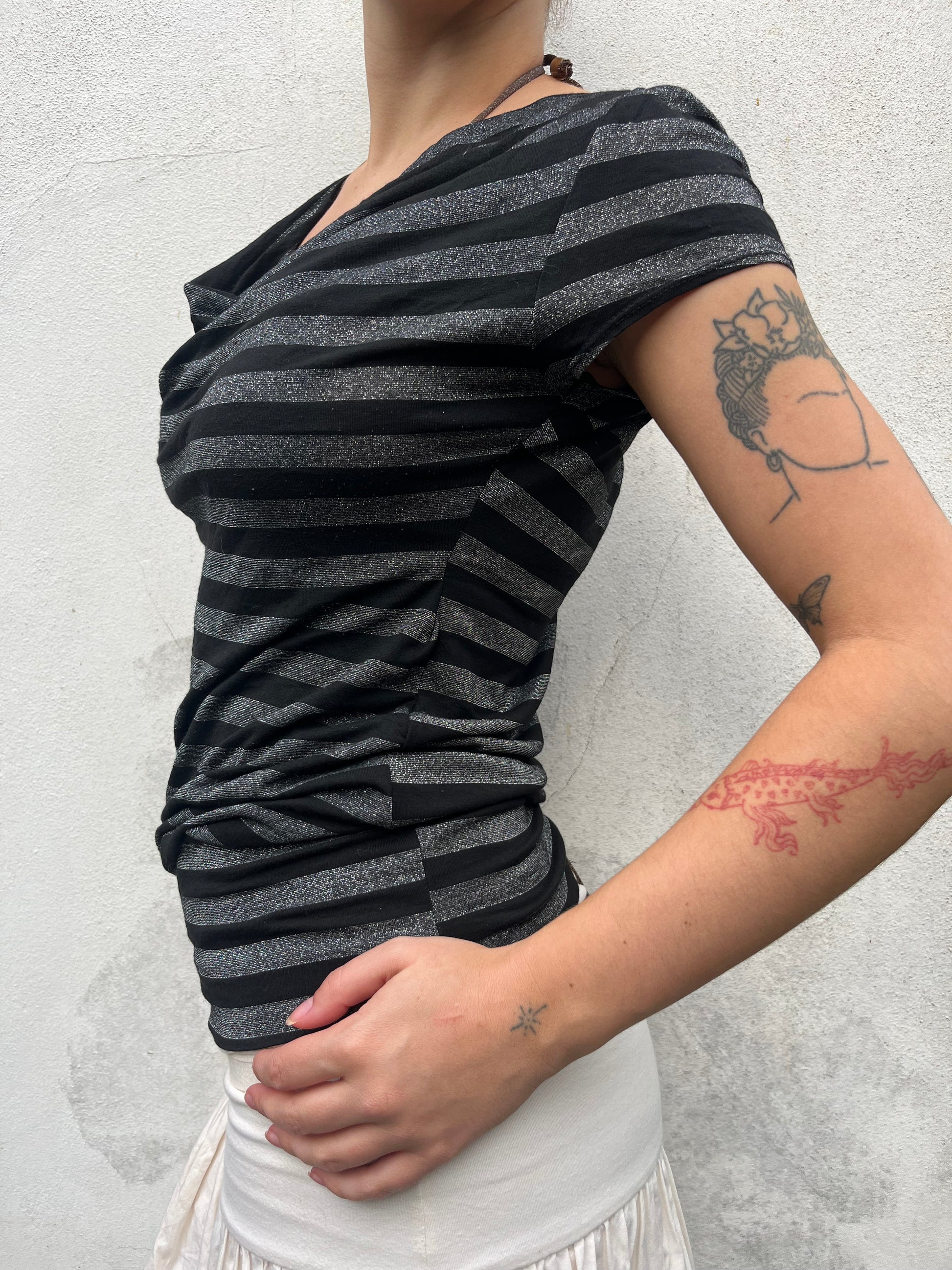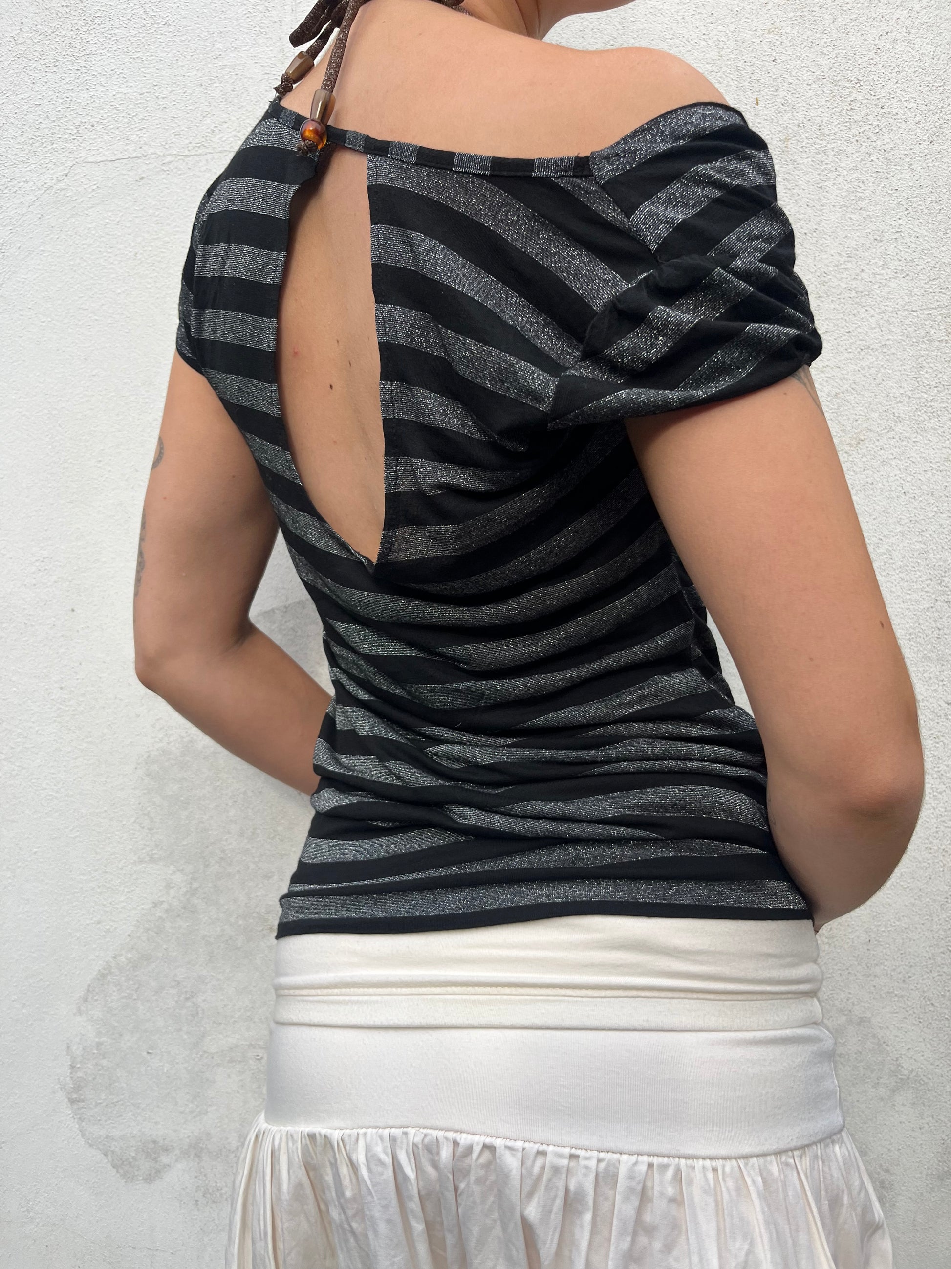 black and silver stripy top