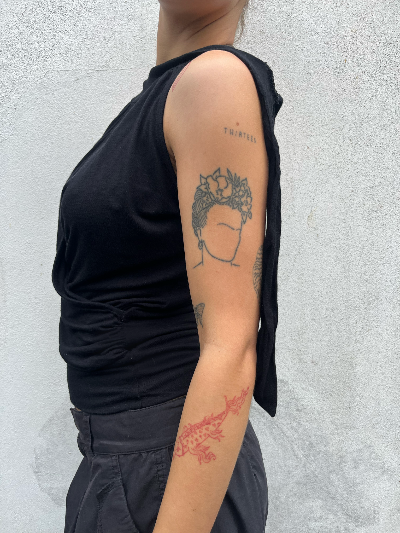 Vintage black halter neck top with a crossover detail. Could also be worn back to front with the keyhole on the neckline.